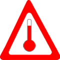 Вещества при повышенной температуре включают вещества, перевозимые или предъявляемые для перевозки в жидком состоянии при температуре не ниже 100°C и — если они имеют температуру вспышки — ниже их температуры вспышки. К ним также относятся твердые вещества, перевозимые или предъявляемые для перевозки при температуре не ниже 240°C. При их перевозке автоцистерны, специальные транспортные средства и специально оборудованные транспортные средства для перевозки грузов навалом/насыпью должны иметь с обеих боковых сторон и сзади следующий маркировочный знак: